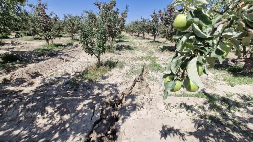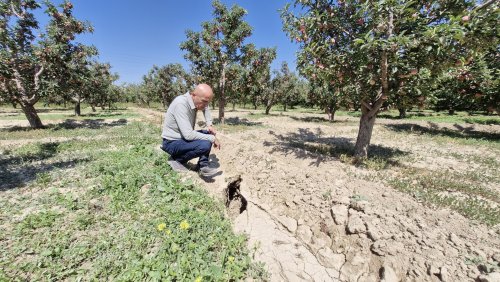 Elma bahçesinin sahibi Mustafa Davarcı ise bahçeyi sularken yarığı ve çökmeleri fark ettiklerini belirterek, “Baktık ki yarıklar büyüyerek ilerlemeye başladı. Şu an ürkütücü bir durum var” dedi.