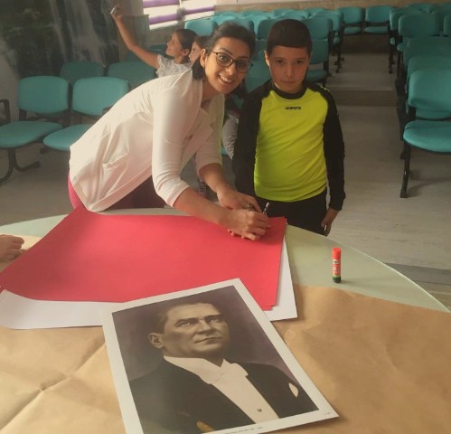 Mustafa Kemal Atatürk için yazdıkları şiirleri ve özlü sözleri sınıfta okuyan öğrenciler Cumhuriyet Bayramı için hazırlanan pano çalışmasında heyecanlarını gizleyemediler.