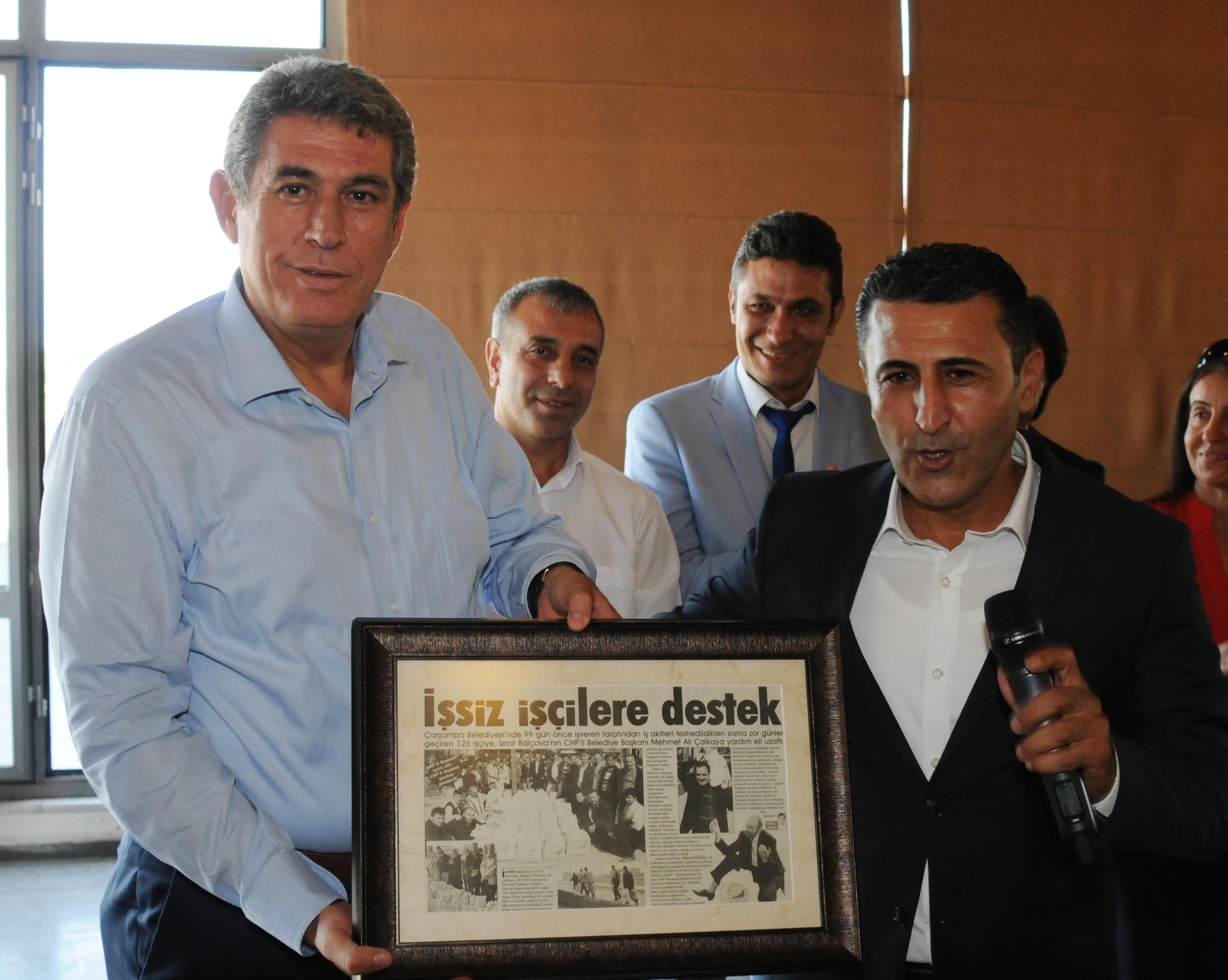 Belediye-İş 4 No’lu Şube Başkanı Ayhan Doğan, işçi ve işçi hakları ile ilgili uygulamalarından dolayı Balçova Belediye Başkanı Mehmet Ali Çalkaya’ya tüm işçiler adına teşekkür etti. Uzun yıllardır Balçova Belediyesi’nde yetkili sendika olduklarını ve işçinin günü gününe maaşının ödendiğini belirten Ayhan Doğan “Yaşanan krize rağmen şu anda işçisine borcu olmayan çok az sayıdaki belediyeden birisi Balçova Belediyesidir. Bu bizim emek mücadelemiz açısından çok önemli bir kazanımdır. Aynı zamanda belediyemizin başarısı açısından da kazanımdır. Çünkü geçim derdinde olan maaşının akıbetini düşünen işçiden verim alamazsınız” diye konuştu.