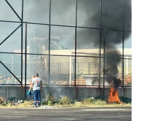 Armutlu futbol sahası etrafında Kemalpaşa Belediyesi temizlik görevlilerinin topladığı araba lastiklerinin yakıldığını belirten vatandaşlar, duruma tepki gösterdi.