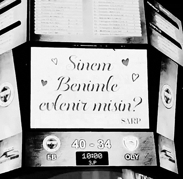 Paramparça’nın Demir’i Sarp Akkaya, bir süredir birlikte olduğu sevgilisi Sinem Yalçınkaya’ya Fenerbahçe’nin geçtiğimiz akşam Olympiakos’la oynadığı basketbol maçında romantik bir evlenme teklifi etti