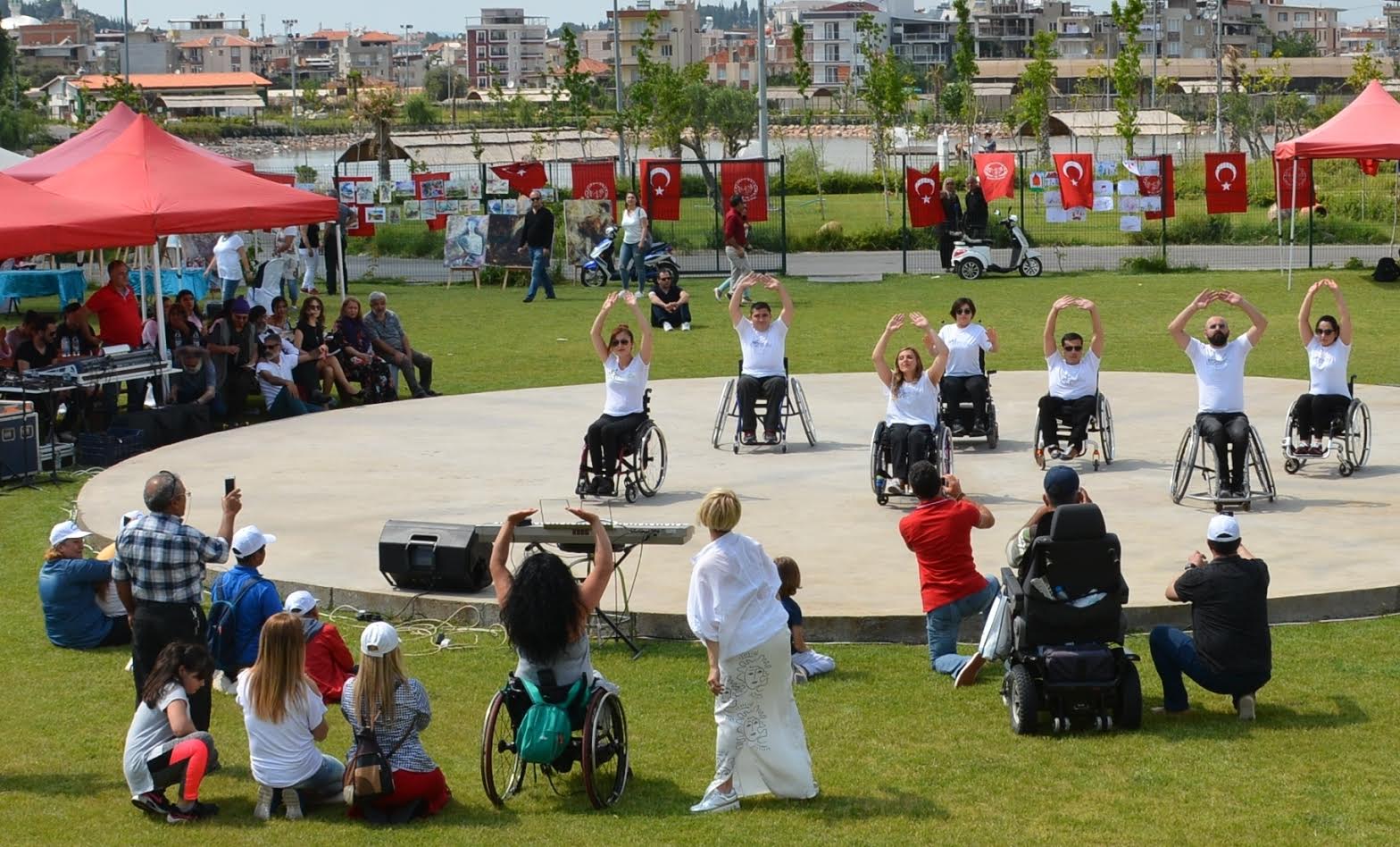 Menemen Kültür ve Halk Oyunları Gençlik Spor Kulübü Derneği’nin karma zeybek ekibi gösterileri, genç kemancı Damla Turan’ın müzik dinletisi ve Tekerlekli Sandalye Dans Show ile renklenen etkinliğe; İzmirli şairler Ahmet Dinç, Erkan Demir, Emine Cin, Tahir Eker, Erdal Demir, Nazif Çavdar şiirlerini seslendirerek, İzmirli yazarlar Mesut Tim, Metin Aydınoğlu, Yüksel Kurtul, Huriye Saraç, Şakir Kadan ve Aydemir Çimen ise kitaplarını okurları için imzalayarak destek verdi. Ressam Nimet Topkaç, Hamidiye Türkan Kurt, Hülya Tartar, İlknur Bakış ve Hasan Gürsoy ise canlı performans sergileyerek etkinliğe katkıda bulundu. Ressamların eserleri ve yazarların imzaladığı kitaplar, Menemendeki engelli vatandaşları ihtiyaç duydukları akülü tekerlekli sandalyelere kavuşturmak için şenlik alanında satışa sunuldu.