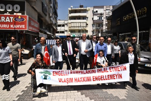 Tatlı Su mevkiinde başlayan korteje eşlik eden Menemen Belediye Başkan Vekili Aydın Pehlivan, engellilerin yaşadıkları zorluklara dikkat çekmek için gözlerine siyah bandaj taktı. Bando takımının da eşlik ettiği kortej yürüyüşünde engelli bireyler taşıdığı dövizlerle engelleri aşma vurgusuna dikkat çekti. Çevredeki vatandaşların ve esnafın alkışlarla destek verdiği kortej, Cumhuriyet Meydanı’nda son buldu.