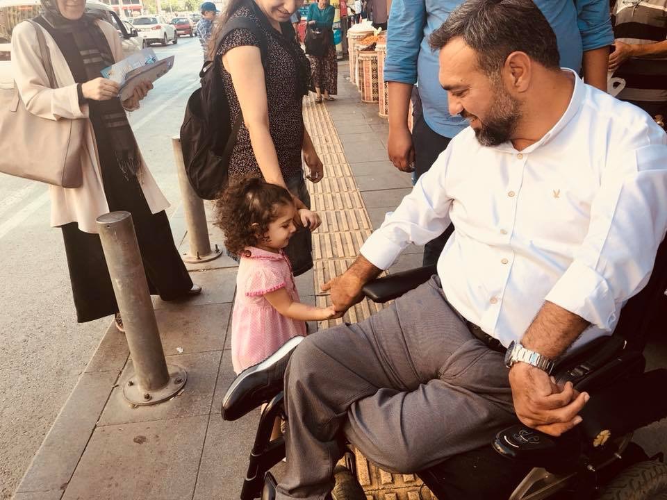 Daha önce söylediğim gibi Cumhurbaşkanımıza olan hayranlığımdan. Çünkü Sosyal Politikalar anlamındaki eğilimi, isteği ortada. Ben engelli bir vatandaş olarak sahip olamadığım bir çok hakkı 2002 ‘den sonra Cumhurbaşkanımız sayesinde sahip oldum. Az önce anlattığım bir tekerlekli sandalyeye lüks vergisi öderken bugün her yer tekerlekli sandalyeyle dolu gidip isteğin her yerden tekerlekli sandalyeni alabiliyorsun. Ve sosyal güvenlik kurumu bünyesinde alıyorsun. Adalet ve Kalkınma Partisi Türkiye Cumhuriyetinde tüm siyasi partiler içerisinde bir ilki gerçekleştirdi. Engelliler koordinasyon merkezi diye partinin içerisinde bir merkez kurdu. Ve engelli koordinasyonunun başındaki başkanları İl başkanı bazında tutuyor.2011 yılından beri Ak parti İzmir engelliler koordinasyon başkanıyım ve benim 30 ilçede engelli atadığım ilçe başkanlarım var. Ak partide olmayımda nerede olayım.