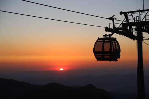 Hacılar Kapı'dan çekilen ve teleferiklerin de yer aldığı gün batımı, fotoğrafları kartpostallık görüntüler oluşturdu.