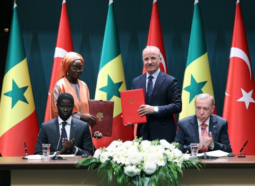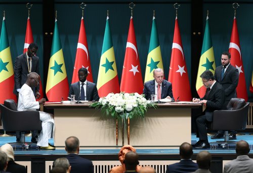 Cumhurbaşkanı Recep Tayyip Erdoğan, Senegal Cumhurbaşkanı Bassirou Diomaye Diakhar Faye ile Anlaşmaların İmza Töreni ve Ortak Basın Toplantısı’nda konuştu. Senegal Cumhurbaşkanı Faye ve heyetini Türkiye’de misafir etmekten memnuniyet duyduğunu ifade eden Erdoğan, “Bu vesileyle geçtiğimiz Mart ayında yapılan cumhurbaşkanlığı seçimlerinde elde ettiği zaferden dolayı kendisini tekrar üreten tebrik ediyorum. Senegal Batı Afrika’da en sıkı münasebetlerimizin olduğu ve Afrika kıtasının istikrar ve esenliğine en fazla katkıda bulunan ülkelerin başında geliyor. Birçok konuda aynı tutumu paylaşıyoruz. İlişkilerimizi stratejik ortaklık düzeyine çıkaran mutabakat protokolünü biraz önce imzaladık. Bugünkü temaslarımızda ülkelerimiz arasında yatırım ve ticaret olmak üzere güvenlik, savunma sanayisi, terörle mücadele, enerji, tarım, şehircilik, kültür ve yüksek öğretim alanlarından işbirliği imkanlarını ele aldık” dedi.