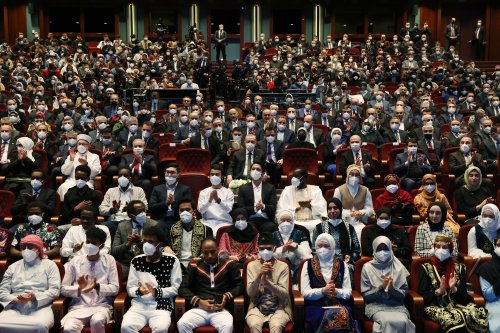 Türkiye'nin dört bir yanından eğitim için gelen öğrencilere de kucak açtığını ifade eden Erdoğan, "Şu anda bizler Türkiye olarak bunca dünyanın dört bir köşesinden gelen gençlerimizle ülkemizde beraberiz. Burada eğitim öğretimlerini alıyorlar. Türkiye Diyanet Vakfı'mızın bu noktadaki el uzatışı ile de Türkiye gibi bir ülkede hem Türkçeyi öğreniyorlar, hem tahsil ettikleri ilmin sahibi oluyorlar. Bundan daha güzel bir şey olur mu? Adam ne diyor; 'göndereceğim' diyor. İşte farkımız bu. Kendi insanlarımız içinde de hiç kimseyi, mahzun, boynu bükük, kalbi kırık bırakmayacağız. Çünkü bizim medeniyetimiz, tarihimiz, kültürümüz, değerlerimiz, bunu gerektiriyor. Başımıza gelen onca musibete rağmen hala dimdik ayakta duruyor, hala hedeflerimize doğru yürüyor oluşumuzu işte bu hassasiyetimize borçlu olduğumuza inanıyorum" ifadelerini kullandı.