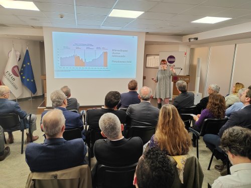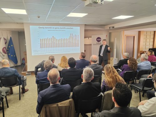 ESİAD Ekonomi Gözlem Grubu tarafından hazırlanan “Türkiye Ekonomisine İlişkin Değerlendirmeler ve 2024 yılı Üye Beklenti Anketi Sonuçları” konulu toplantı dernek merkezinde gerçekleştirildi. Ekonomist Güldem Atabay’ın konuk konuşmacı olarak yer aldığı toplantıda Ekonomi, Finans ve Maliye Yuvarlak Masası Başkanı Muhittin Bilget de 2024 yılı beklentilerine ilişkin bir sunum yaptı.