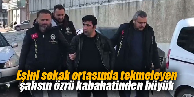 Eşini sokak ortasında tekmeleyen şahsın özrü kabahatinden büyük