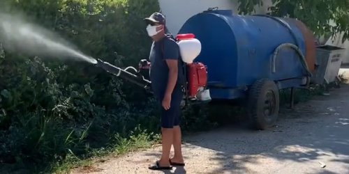 Menderes’in Oğlanağası’nda annesinin oturduğu eve her hafta sonu mutlaka giden eski Başkan Soylu, yükleniyor ilaç deposunu sırtına, maskesini takıyor, makinesini çalıştırıyor, başlıyor mahalleyi, köyü ilaçlamaya.