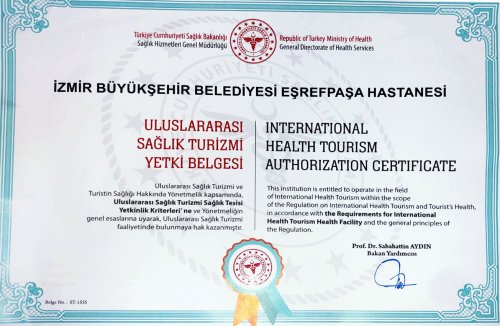 İzmir Büyükşehir Belediyesi Eşrefpaşa Hastanesi, Sağlık Bakanlığı’nın kriterlere sahip sağlık kuruluşlarının alabildiği Uluslararası Sağlık Turizmi Yetki Belgesi’ni edinmeye hak kazandı. Eşrefpaşa Hastanesi, bu belge sayesinde yurt dışından da hasta kabul edebilecek. Yurtdışından gelen hastalar hastanenin tüm birimlerinden Sağlık Bakanlığı’nın belirlediği tedavi ücretleri üzerinden yararlanabilecek. Eşrefpaşa Hastanesi’nin internet sitesinde “Medikal Turizm” başlığı altında İngilizce bir bölüm de açıldı.