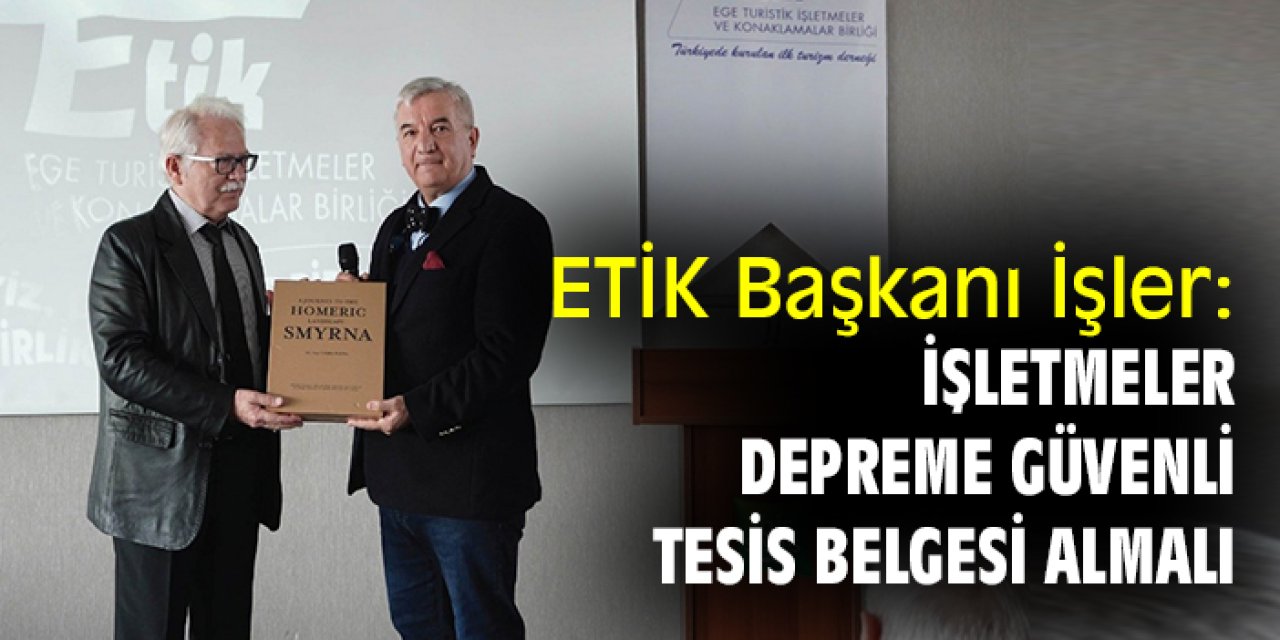 Mehmet İşler, sözlerini "Ege Turistik İşletmeler ve Konaklamalar Birliği olarak Ege Bölgesindeki işletmelerin depreme dayanıklılık testi yaptırmalarını ve Depreme Güvenli Tesis Belgesi almalarını yakından takip ve teşvik ediyoruz. Resmi kurumlardan alınan test belgelerini işletmelerimizde uygun yerlere asarak dileyenin bilgi sahibi olmasını sağlıyoruz. Bu testleri misafirlerimizin, konaklayacağı yerlerin güvenli olduğunu görmelerinin yanı sıra işletmelerde çalışan personelimizin güven içinde işlerine odaklanması için de gerekli sayıyoruz. Yurtdışı tur operatörleri de bu belgeleri istemekte ve rezervasyon yaparken müşterilerine arz etmektedir. Diğer taraftan binalarımız için yıllık olarak DASK (Doğal Afet Sigortalar Kurumu) Sigortası yaptırılmaktadır. Bu sigorta yaptırılırken de kurum depreme dayanıklılık test sonuçlarını talep etmektedir. Bu testleri sadece sigorta gereklilikleri ve pazarlama için değil, insan sağlığı ve can güvenliği için yaptırıyoruz. Turizm sektörü bu alanda proaktif bir rol üstlenmiştir. İşletmelerimizin hemen hepsi bu testlerden geçirilmiş ve depreme uygunluk raporunu almış durumdadır" cümleleri ile sonlandırdı.