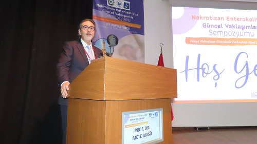 Sempozyumun açılış konuşmasını gerçekleştiren Prof. Dr. Mete Akısü, “Mayıs ayı Nekrotizan Enterokolit (NEK) Farkındalık Ayı olarak kabul edilir ve 17 Mayıs, Dünya NEK Farkındalık Günü olarak anılır. Bu, dünya genelinde NEK farkındalığını artırmak ve bu hastalığa karşı global mücadelemizi güçlendirmek için hayati önem taşıyor. NEK, yaşamlarının ilk haftalarında ve aylarında hassas bebekleri etkileyen, yıkıcı bir bağırsak hastalığıdır. NEK geliştiren bebeklerin yüzde 30'una kadarı hayatını kaybeder ve sağ kalanlar genellikle ömür boyu sağlık sorunlarıyla karşılaşır. Ancak, bu hastalığın adını Yenidoğan Yoğun Bakım Ünitesi dışında duyan pek az kişi vardır” diye konuştu.