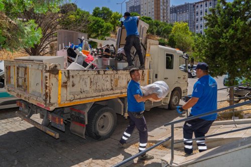 İzmir Büyükşehir Belediyesi, Buca Onat Tüneli inşaatı sırasında evi zarar gören aileyi, Karabağlar Uzundere’deki konutlara taşıdı. Aile 12 ay boyunca burada kira ödemeden oturabilecek.