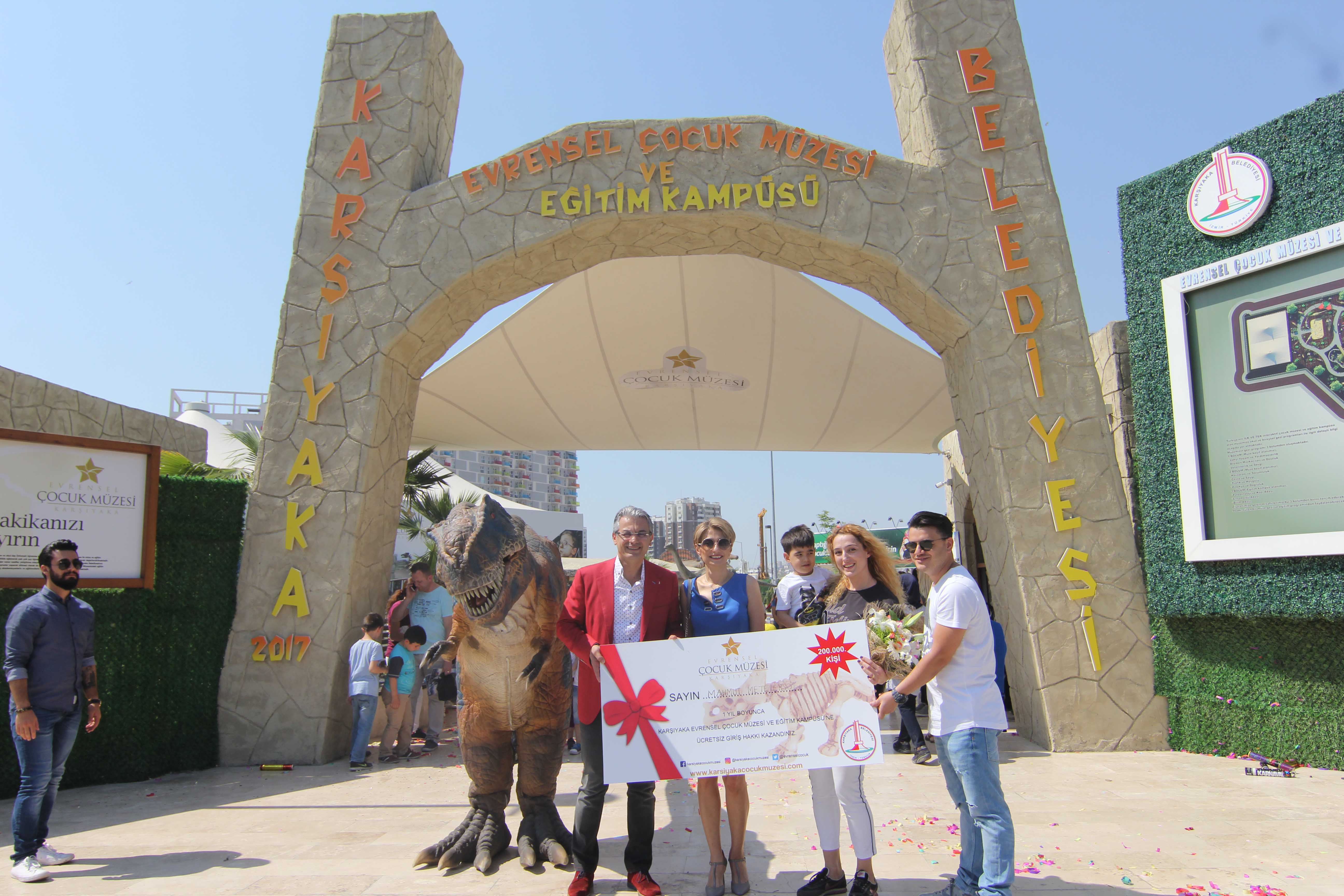 Karşıyaka Belediyesi tarafından Eylül ayında hizmete açılan Evrensel Çocuk Müzesi ve Eğitim Kampüsü, 200 bininci ziyaretçisini sürprizle karşıladı. Belediye Başkanı Hüseyin Mutlu Akpınar, minik Mahmut Mete ve ailesine bir yıllık ücretsiz giriş çeki armağan etti.