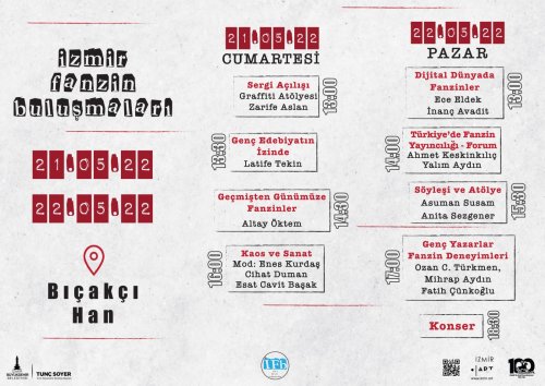 İzmir Büyükşehir Belediye Başkanı Tunç Soyer’in genç odaklı kent vizyonuyla İzmir, ilk kez “Fanzin Buluşmaları”na ev sahipliği yapacak. 21-22 Mayıs tarihlerinde Bıçakçı Han’da düzenlenecek İzmir Fanzin Buluşmaları’nda gençler usta yazarlarla bir araya gelecek. Etkinlikle eski teknoloji ve alışkanlıkların değiştiği bir çağda, fanzinler ve fanzin yayıncılığı masaya yatırılacak. Festival boyunca fanzin ne anlama gelir, bağımsız bir fanzin-dergi politik olarak neyi ifade eder, bir fanzin içeriği oluşturmanın ve yayınlamanın yolları nelerdir gibi sorulara cevap aranacak.