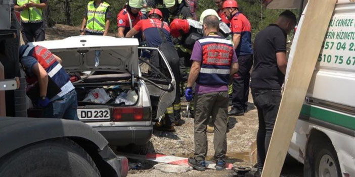 Karşı şeride geçen tır ile otomobilin çarpışması sonucu meydana gelen kazada kopan kaput yolcu konumundaki kişinin ağzına girerken, aynı aileden 3 kişi öldü, 2 kişi ise ağır yaralandı.