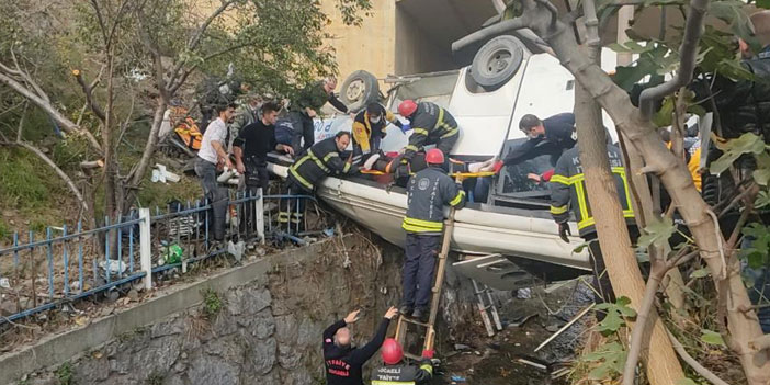 Öğrencileri taşıyan servis midibüsü dere yatağına uçtu. Kazada 30'a yakın öğrenci yaralanırken, olay yerinde can pazarı yaşanıyor.