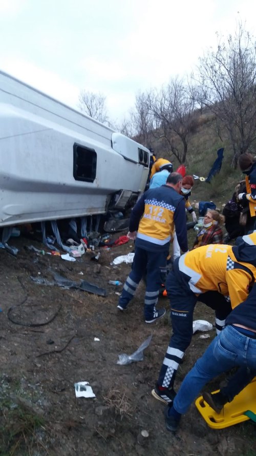 Tur midibüsünün devrildiği kazada 28 kişinin yaraladığı öğrenildi.