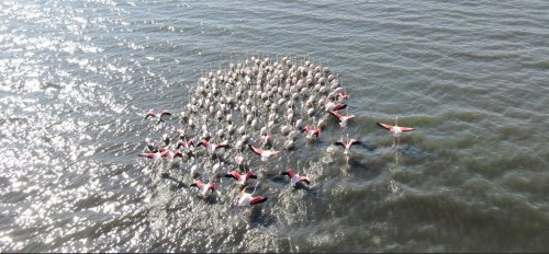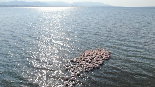 İzmit Körfezi, allı turna olarak da bilinen flamingolara ev sahipliği yaptı. Yüzlerce flamingo, körfezde konaklayarak adeta görsel şölen sundu.