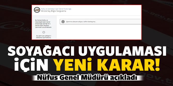 İçişleri Bakanlığı Nüfus ve Vatandaşlık İşleri Genel Müdürlüğü, aşırı yoğunluktan dolayı Alt-Üst Soy Sorgulama Uygulaması’nı geçici olarak durdurdu.