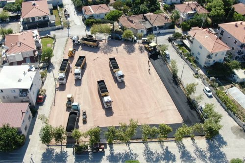 Foça Belediyesi, Kazım Dirik Mahallesi 404 sokaktaki yeni pazar yerinin 2400 m2’lik zemini sıcak asfaltla kapladı.