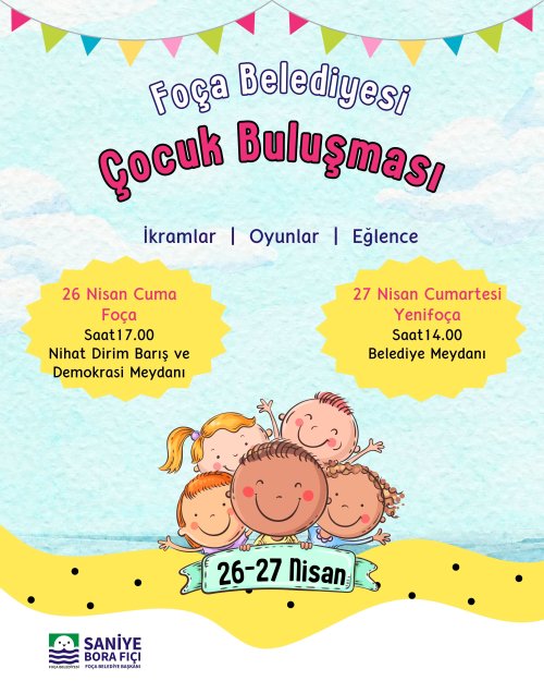 Foça Belediyesi, 26 Nisan Cuma günü saat 17.00’de Foça Nihat Dirim Barış ve Demokrasi Meydanı’nda ve 27 Nisan Cumartesi günü saat 14.00’te Yenifoça Belediye Meydanında gerçekleşecek olan etkinliklere tüm çocukları davet etti.