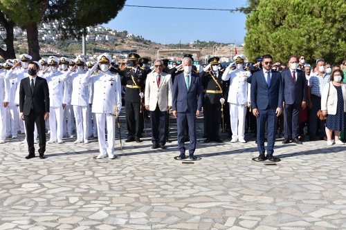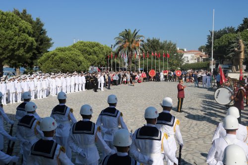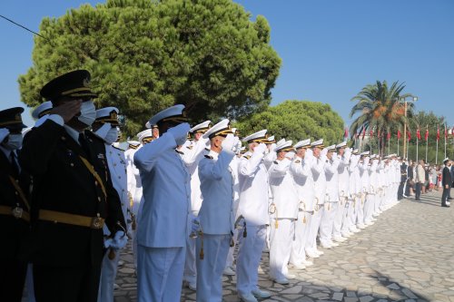 Deniz Yüzbaşı Tarık İlkan Taşkent günün anlam ve önemine ilişkin konuşmasına “Bugün yüce milletimizin tarih sahnesinde varoluşundan bugüne kadar onu yok etmeye çalışan zihniyetin, tarihte eşine az rastlanır bir kahramanlıkla mağlup edildiği 30 Ağustos Zaferinin 99.yıldönümünü kutlamanın gurur ve heyecanı içerisindeyiz” diyerek başladı. Tarık İlkan Taşkent; “Türk Ulusunun Kurtuluş dastanının son aşaması olan 30 Ağustos Zaferi asil Türk Ulusuyla, kahraman Türk Ordusunun ebedi Başkomutan Mustafa Kemal Atatürk ‘ün önderliğinde ulusal birlik ve beraberlik ruhu içerisinde birbirlerine kenetlenerek sürdürdüğü topyekün bir varoluş mücadelesinin sonucudur. Akıl ve bilimin rehberliğinde milli egemenlik ve tam bağımsızlık esasına dayanan Atatürkçü Düşünce Sistemi bugüne kadar olduğu gibi gelecekte de Türk Silahlı Kuvvetlerine yolu gösteren ışık olmaya devam edecektir. Gücünü ulusumuzun sonsuz sevgi ve desteğinden alan Türk Silahlı Kuvvetleri dün olduğu gibi bugünde ulusunun emrinde Türkiye Cumhuriyetinin bekasına, bölünmez bütünlüğüne yönelecek her türlü tehdidi ortadan kaldırmak azim ve kararlılığı içindedir. Bize bu zaferi kazandıran başta Gazi Mustafa Kemal Atatürk olmak üzere vatan ve ulusu için bir an bile tereddüt etmeden hayatını feda eden aziz şehitlerimizi rahmet, minnet ve şükranla anar, kahraman gazilerimize ve yüce Türk Milleti’ne şükranlarımızı sunarız. 30 Ağustos Zaferimizin 99.yılı kutlu olsun” dedi.