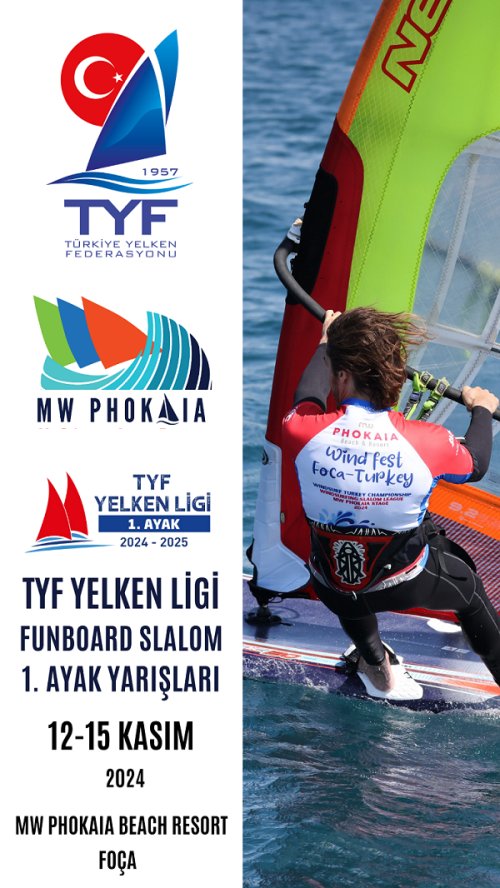 Foça'da 12-15 Kasım 2024 tarihleri arasında düzenlenecek TYF Yelken Ligi 1. Ayak Funboard Slalom Yarışları heyecanı başladı.