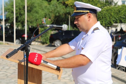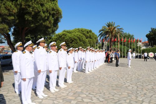 Cumhuriyet Meydanı’ndaki törenin ardından protokol ve beraberindekiler bir gezi teknesi ile denize açılarak Küçükdeniz Liman içine geldi. Burada deniz şehitlerine saygı için hazırlanan çelenk teknedekilerin saygı duruşu eşliğinde mavi sulara bırakıldı.