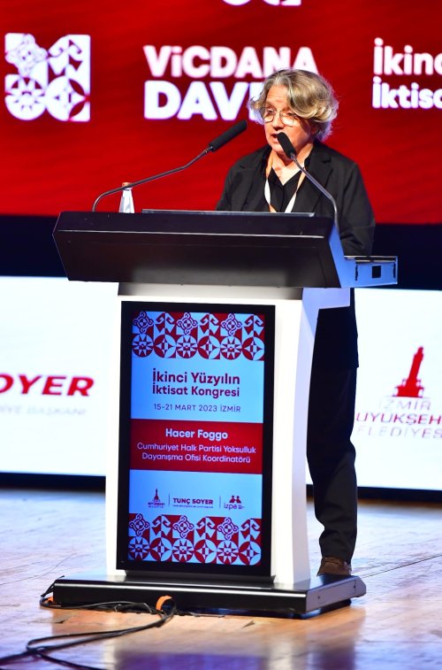 Cumhuriyet Halk Partisi Yoksulluk Dayanışma Ofisi Koordinatörü Hacer Foggo, İkinci Yüzyılın İktisat Kongresi'ndeki konuşmasında yoksulluğu bitirecek olan tek şeyin, yoksulluk içinde mücadele edenleri dinlemek ve anlamak olduğuna vurgu yaptı.
