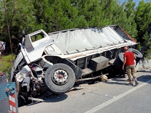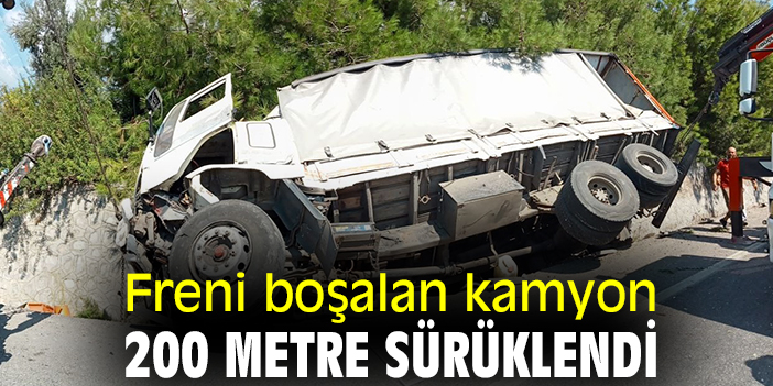 Bornova ilçesinde freni boşalan kamyon, yol kenarındaki bankete devrilerek 200 metre sürüklendi. Sürücü kazayı hafif sıyrıklarla atlattı.