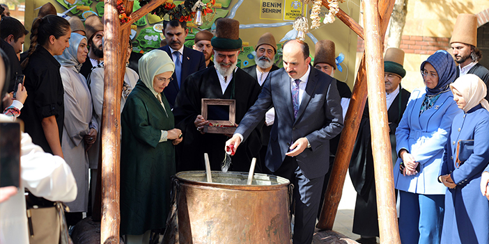 Cumhurbaşkanı Recep Tayip Erdoğan’ın eşi Emine Erdoğan; huzurun, hoşgörünün ve misafirperverliğin şehri Konya’da olmanın mutluluğunu yaşadıklarını belirterek, “Bugün Konya’da gastronomi günleri vesilesiyle bir aradayız. Konya Büyükşehir Belediyemize büyük bir titizlikle hazırlanan bu organizasyonda bizleri konuk ettiği için şükranlarımı sunuyorum. Konya Anadolu’nun özünü ruhunda yaşatan son derece özel bir yer. Dünyanın en eski yerleşim merkezlerinden biri olan bu kadim şehirde birçok medeniyetin ve kültürün izini sürüyoruz. Yüzümüzü çevirdiğimiz her yerde bizi karşılayan tarihi eser zenginliği, insanda adeta bir açık hava müzesi etkisi bırakıyor. Yaşamın her alanına sirayet eden Mevlevilik müessesesinin en önemli etkilerinden birini mutfak kültürü üzerinde de görüyoruz. Edeple adapla yoğrulmuş mutfak pratikleri manevi eğitimin parçası haline gelmiştir. Dervişler, eğitimlerine mutfakta başlamıştır. Sadece yemek pişirmek değil; Allah’ın insanlara lütfettiği rızka hürmeti öğretmişlerdir. Yiyecekleri en verimli şekilde pişirmişlerdir” ifadelerini kullandı.