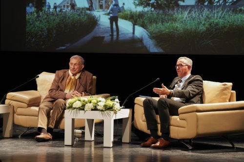 Söyleşinin Moderatörlüğünü yapan Çağlar İşgören, “Yüzüncü Yıl Sanat Merkezi’ne hayran olmamak elde değil. Buranın salonunun sadece tiyatro salonu olması, oyunlara özel olması çok anlamlı. Başkanım çok heyecanlandırdı beni. Sanat merkezinin açılışında olacağız. Gaziemir’in çok şanslı olduğunu düşünüyorum. Böyle salonlar oldukça sanat çok gelişecek” diye konuştu.