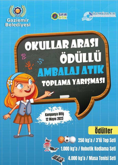 Gaziemir Belediyesi’nin okullarda düzenlediği geri dönüşebilen atık toplama yarışması başladı. 12 Mayıs’a kadar en çok ambalaj atığı, elektronik atık ve bitkisel atık yağ toplayan okullara ödül verilecek.