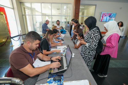 Sosyal Yardım İşleri Müdürlüğü tarafından yürütülen çalışma kapsamında, öğrenciler velileriyle birlikte Gaziemir Belediyesi Ana Hizmet Binası’nı ziyaret ederek çantalarını teslim alıyor.