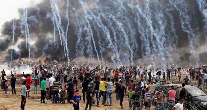 Filistin Sağlık Bakanlığı tarafından yapılan açıklamada, sınırda yaşanan protestolarda İsrail askerlerinin gerçek mermi ve gaz bombası kullanması sonucu 61 kişiyi şehit ettiğini, 2 bin 800 kişiyi de yaraladığı ifade edildi.