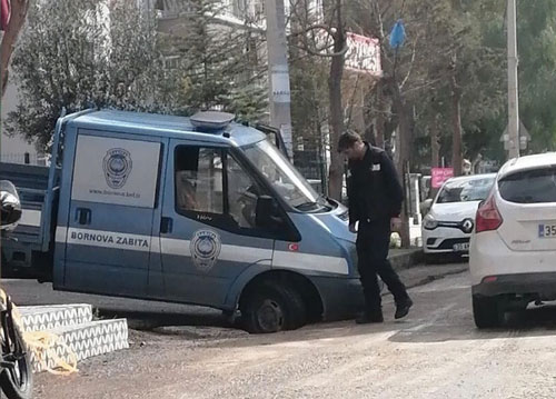 Türk Telekom, Çamdibi'nde çalışmalar için kazdığı yoldaki çukurların kapatılmaması yüzünden Bornova Belediyesi Zabıta Müdürlüğü'ne ait araç çukura düşüyor. Bornova Belediyesi Yetkilileri, araçta maddi hasarın olmadığını açıkladı. Kazdıkları çukurları kapatmak zorunda olan Türk Telekom'a vatandaşlar tepki gösterdi .