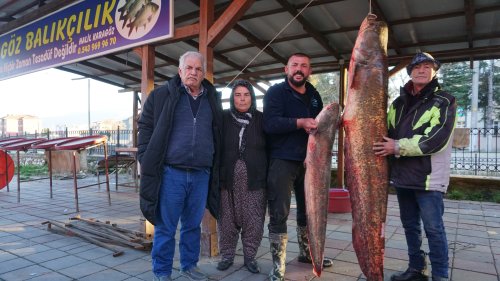 Burdur'da balıkçıların ağlarına tam 2 metre uzunluğunda ve 52 kilogram ağırlığında dev bir yayın balığı takıldı. Devasa balığı görenler hayretlerini gizleyemedi.