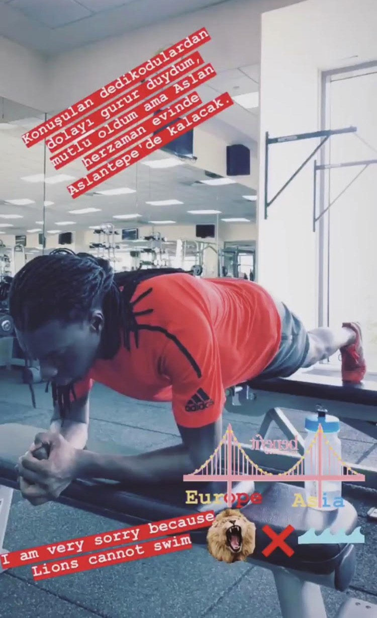 Yaptığı paylaşıma köprü şekli ekleyen Fransız golcü, köprünün bir tarafına sarı-kırmızı harflerle Avrupa, diğer tarafına ise sarı-lacivert harflerle Asya yazarak, "Üzgünüm çünkü aslanlar yüzemez" notunu ekledi.