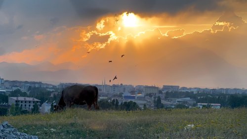 Ağrı’nın Küpkıran Mahallesi’nde gün batımı, doğaseverler ve fotoğraf tutkunları için adeta görsel bir şölene dönüşüyor. Kösedağ manzarasıyla birleşen bu mest edici tablo, güneşin alçalan ışıklarıyla birlikte renk cümbüşü oluşturuyor. Günün son ışıklarıyla birlikte gökyüzü sarıdan kızıla dönerken, doğanın içinde oyun oynayan çocuklar, otlayan hayvanlar ve rengarenk açmış kır çiçekleri ile manzara adeta bir kartpostalı andırıyor. Bu özel anlar, yalnızca mahalle sakinlerinin değil, aynı zamanda Ağrı’nın doğal güzelliklerini görüntülemek isteyen amatör ve profesyonel fotoğrafçıların da ilgisini çekiyor. Günün en etkileyici saatlerinden biri olarak kabul edilen bu dakikalar, huzur ve estetiğin buluşma noktası haline geliyor.