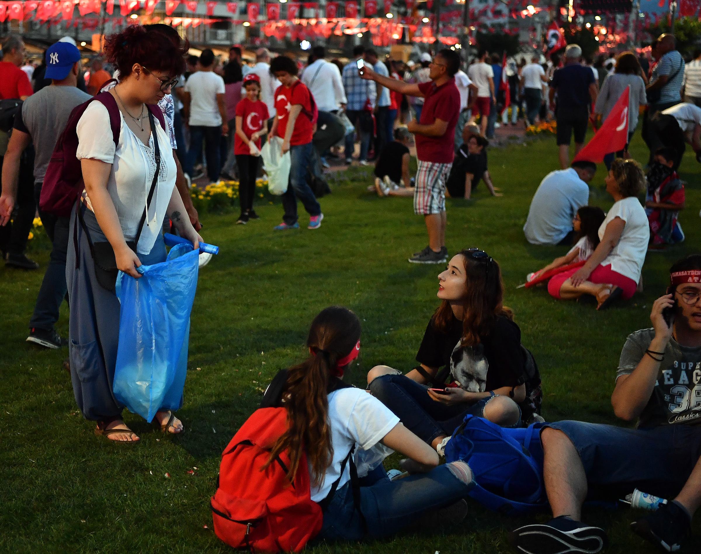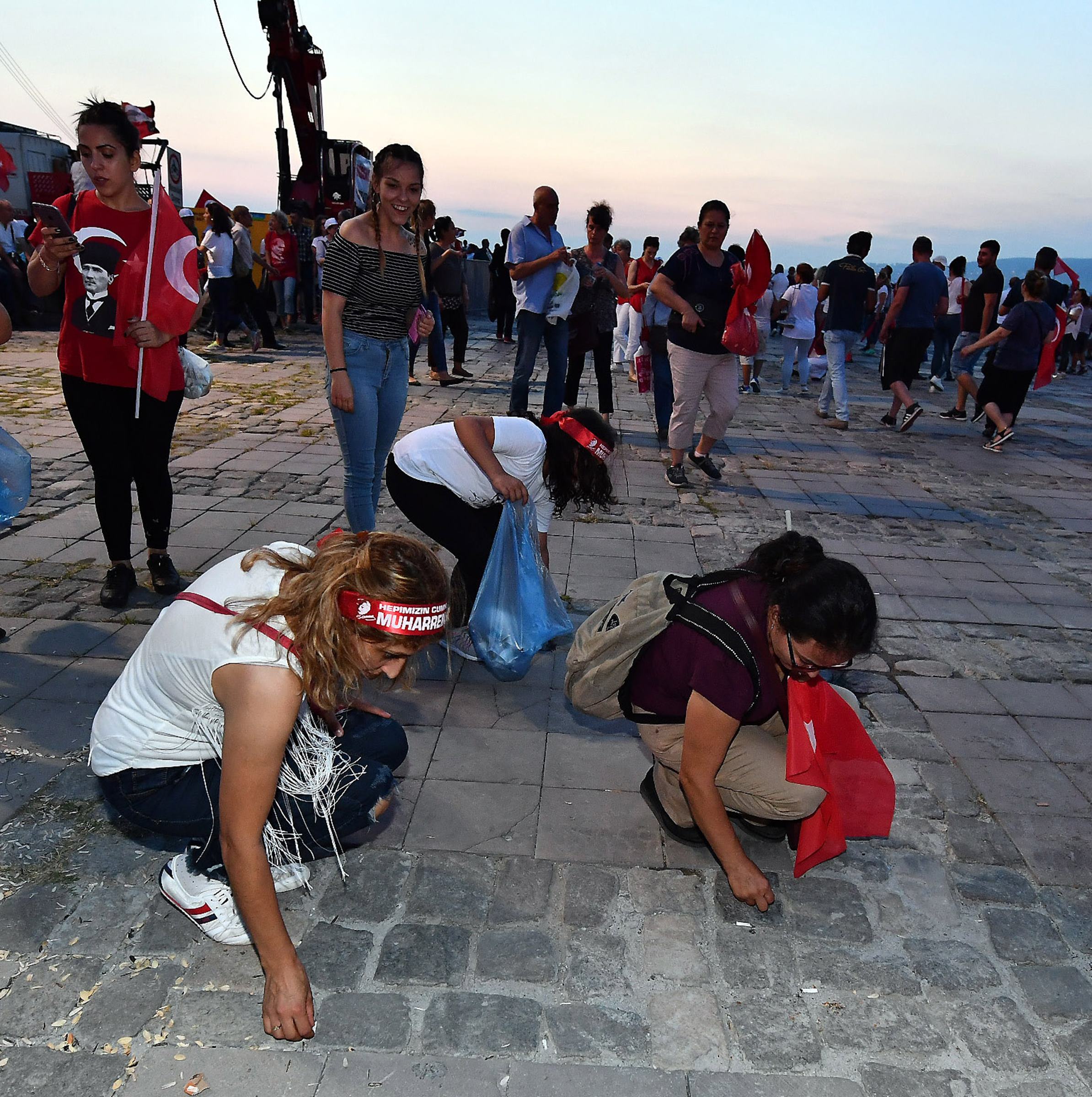 Miting kalabalığının dağılmasından sonra alana giren İzmir Büyükşehir Belediyesi ekipleri, doldurdukları çöp poşetlerini belli noktalarda toplayarak örnek bir iş yapan İzmir'in duyarlı insanlarına teşekkür etti.