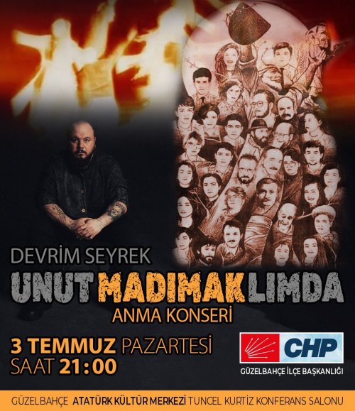Güzelbahçe Belediyesi, Madımak Katliamı'nda hayatını kaybeden aydınlar için anma konseri düzenliyor.