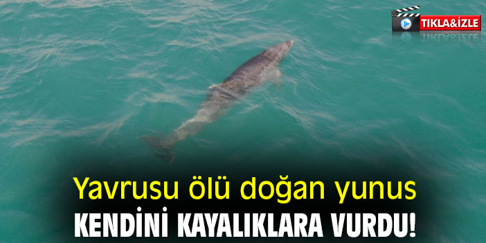 Yavrusu ölü doğan yunus kendini kayalıklara vurdu!