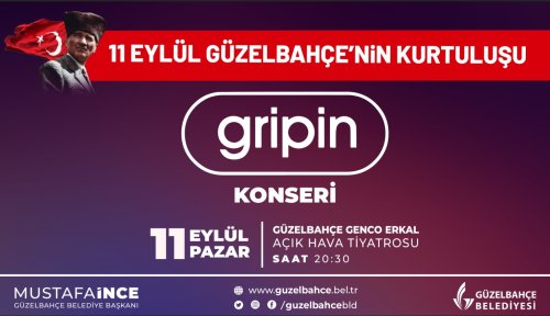 Güzelbahçe Genco Erkal Açık Hava Tiyatrosu’nda yapılacak.11 Eylülde Güzelbahçe’nin Kurtuluşu’nda Gripin konseri düzenlenecek.