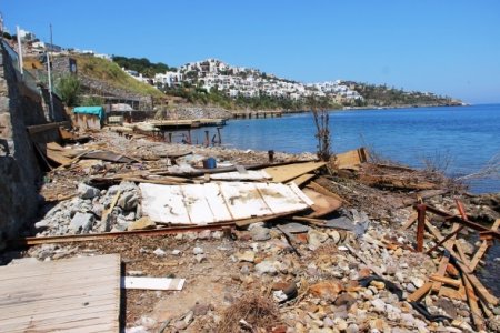 Sahildeki eğlence mekanı, Bodrum Belediyesi ekipleri tarafından işletmenin kamusal alanı işgal eden kısımlarının olduğu gerekçesiyle geçtiğimiz gün dozer ve kepçelerle yıkıldı.Büyük bölümü yıkılan işletmenin kullanılamaz hale geldiği görüldü.