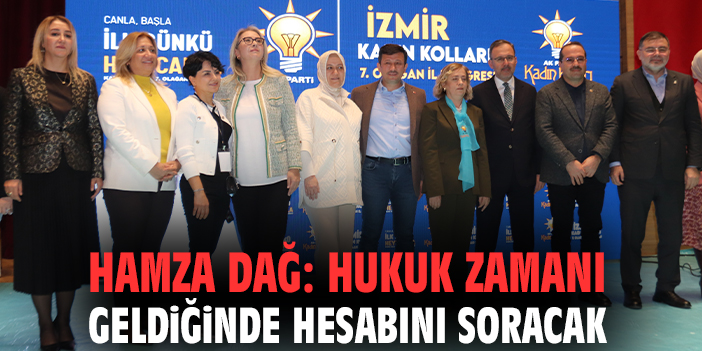 AK Parti İzmir Kadın Kolları İl Kongresi’nde konuşan Genel Başkan Yardımcısı Hamza Dağ, “CHP Genel Başkanı, İzmir’de Gezi Olayları’ndan dolayı rahatsızlıklarını dile getirip 'sürecin takipçisiyiz' demiş. Hukuk zamanı geldiğinde hesabını soracak” dedi.