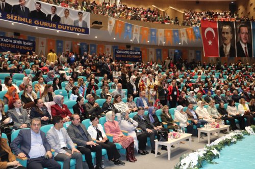 AK Parti İzmir İl Kadın Kolları Başkanı Emel Dalkıran ise “İnsanlığın yarısı kadınlardan oluşur; diğer yarısını da kadınlar yetiştirir. Böylesine kudretli bir gücü elinde bulunduran kadının; siyasette, eğitimde, teknolojide ve daha pek çok alanda varlığı muhakkaktır. Kadınlar yıllarca bu ülkede sırf başörtüsünden dolayı eğitim ve çalışma hayatından dışlandı. Hor görüldük, itildik. Yasakçı zihniyetin türlü kısıtlamalarına maruz kaldık. Kadın hakları diyenler, dillerinden medeniyeti düşürmeyenler yaptılar. Bugün siyaseti temsil eden kadınlar olarak varlığımız, gurur verici bir tablodur. Eğitimde, teknolojide, siyasette kadınlarımız için başı kapalı-açık ayrımı kalkmış durumdadır. Biz de İzmir’in AK davasının ak yürekli kadınları olarak gece gündüz çalışacağız” açıklamalarında bulundu.