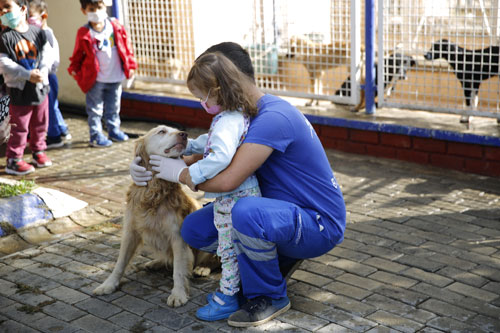 Aydın merkezdeki okullarda eğitim gören minik öğrenciler 4 Ekim Hayvanları Koruma Günü'nde Aydın Büyükşehir Belediyesi Evcil Hayvan Bakım, Besleme ve Rehabilitasyon Merkezi'ne ziyaret ederek buradaki hayvanlarla bir araya geldi