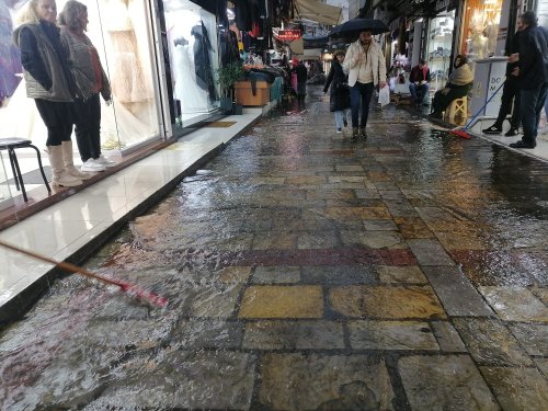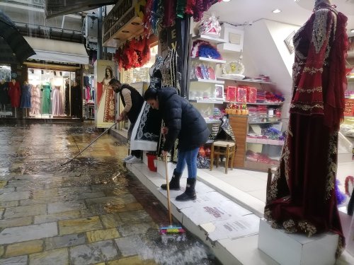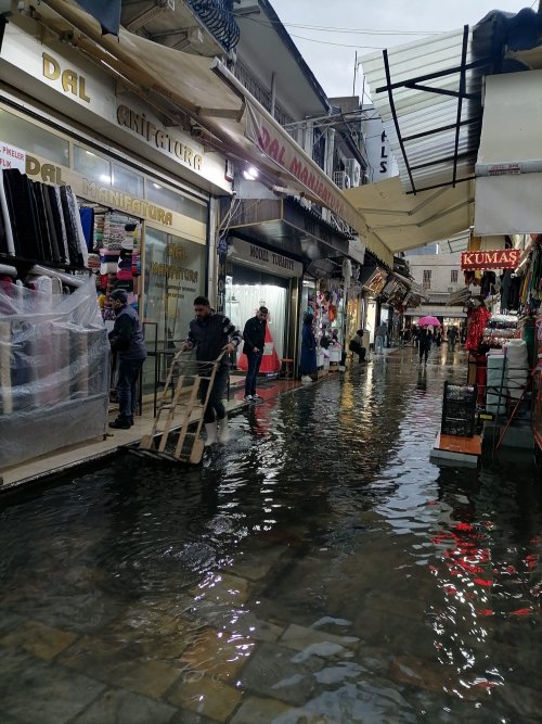 Esnaf Burak Barmanbek, “Yağmur yarım saatte burayı bu hale getirdi. Eşiği aşan sular dükkanlarımıza giriyor. Buraya çözüm bulunmasını istiyoruz. Burada kumaş satıyoruz. Eğer bu kumaşlar çamur olursa zararımız büyük olur. 10 yıldır bu sıkıntıyı yaşıyoruz. Esnafın hepsi mağdur. Fırça ve çekpas ile suları tahliye etmeye çalışıyoruz” dedi. Fatih Varlık isimli esnaf da “Her yağmur yağdığında burası böyle oluyor. dükkanlarımızın içine kadar su doluyor. Umarım bu sorun çözülür. Altyapı yapılırsa böyle olmaz” diye konuştu.